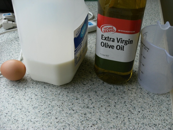 要準備的東西有蛋一顆,隨便什麼油30ml,好喝的水30ml,差點過期的牛奶30ml和奶油30克或兩茶匙