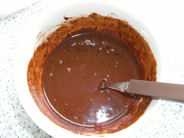 接下來就是加入防呆巧克力蛋糕粉然後攪拌