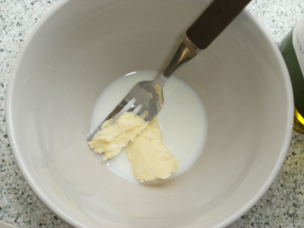 再來就是弄奶油30克~但因為是固體~所以我就加了牛奶去微波
