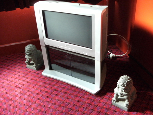 TV ROOM中的電視不曉得為什麼要放石獅...鎮邪嗎= =