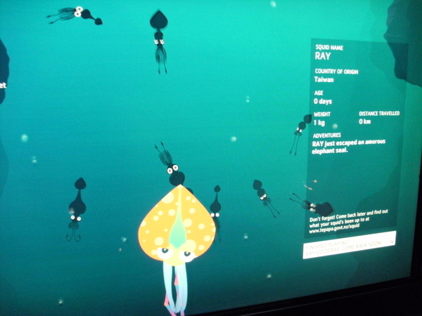 它是無意間被補上來的~超大隻~KIWI為了這隻魷魚而做了很多事情包括教育~還這個建了這個館~若在台灣可能會被吃掉吧~~哈